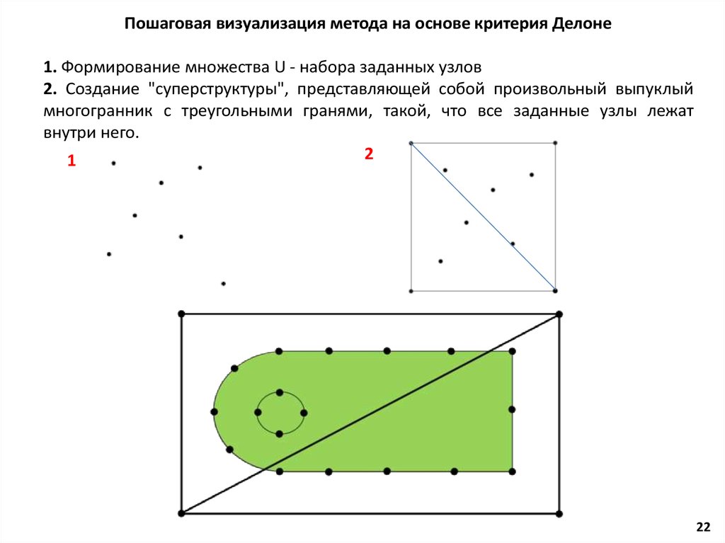 Пошаговая визуализация метода на основе критерия Делоне1. Формирование множества U - набора заданных узлов