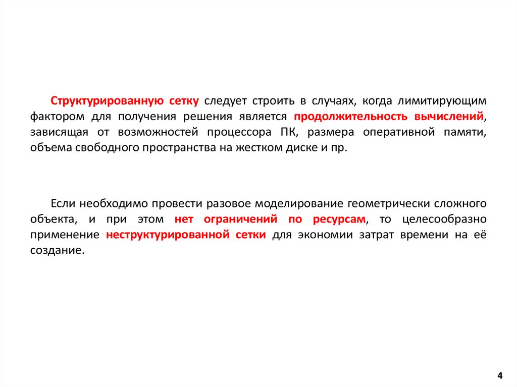 Структурированную сетку следует строить в случаях, когда лимитирующимфактором для получения решения является продолжительность вычислений,