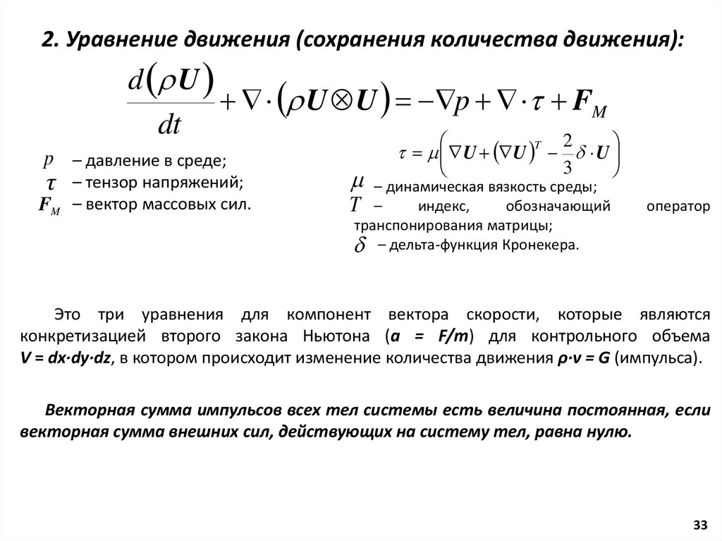 импульса, массы и энергии и известны как уравнения Навье-Стокса. Эти уравнения