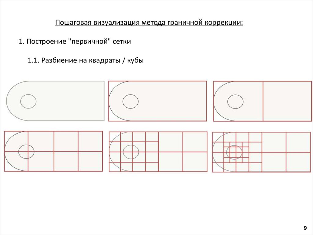 Пошаговая визуализация метода граничной коррекции:1. Построение "первичной" сетки