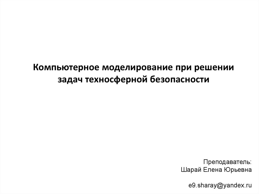 1. Компьютерное моделирование при решении задач техносферной безопасности