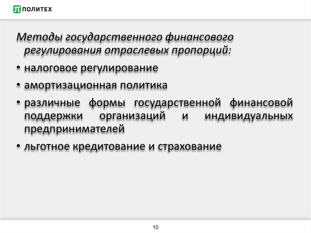 Методы государственного финансовогорегулирования отраслевых пропорций: