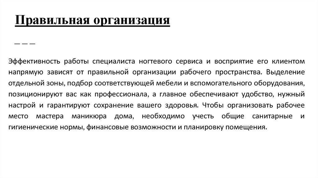 Правильная организацияЭффективность работы специалиста ногтевого сервиса и восприятие его клиентом