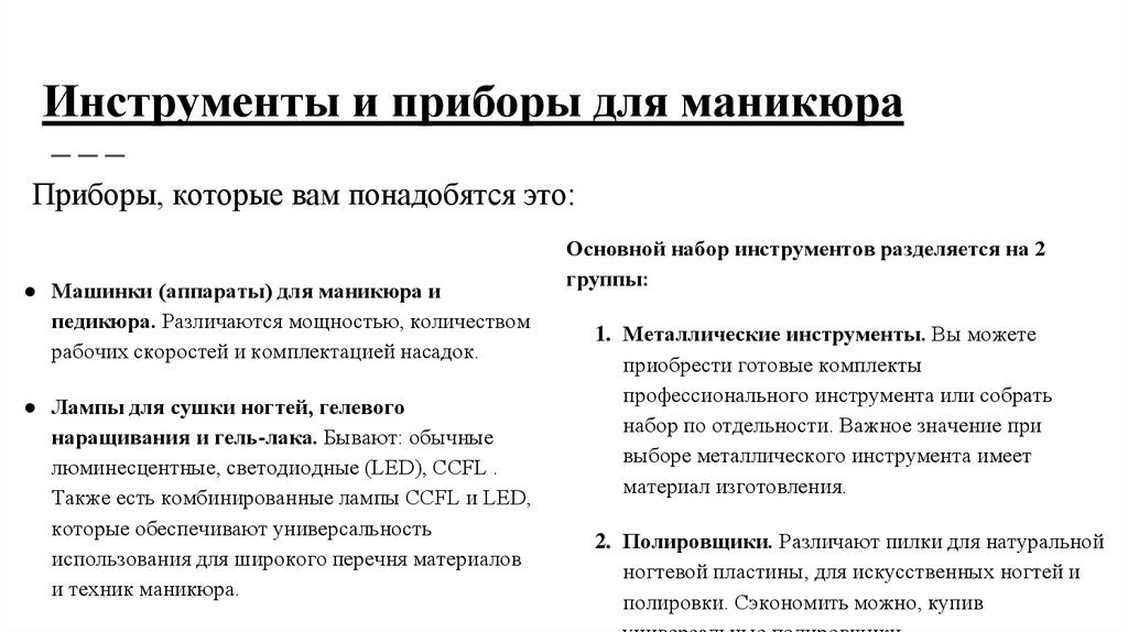 Инструменты и приборы для маникюраПриборы, которые вам понадобятся это: