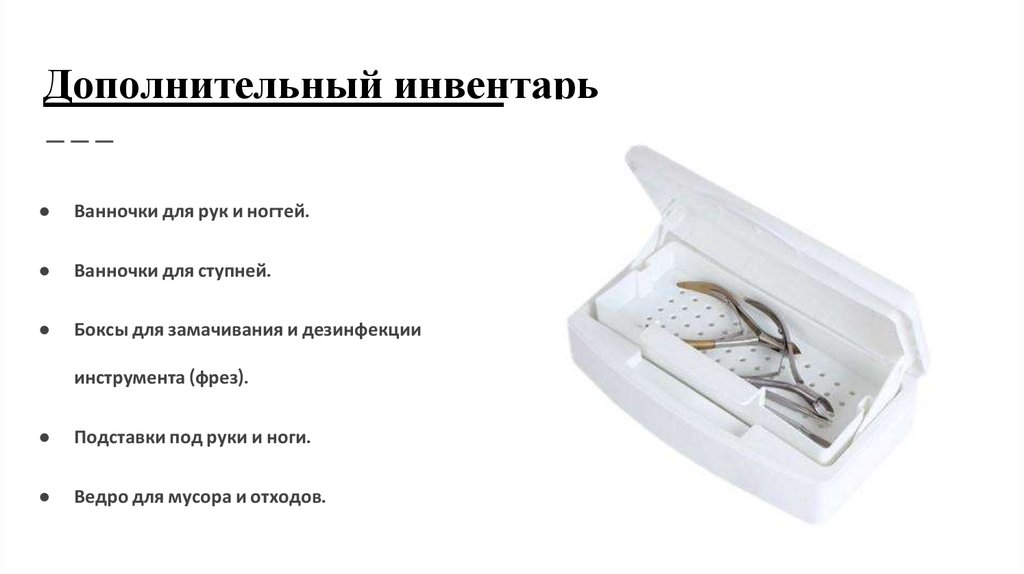Дополнительный инвентарьВанночки для рук и ногтей.
