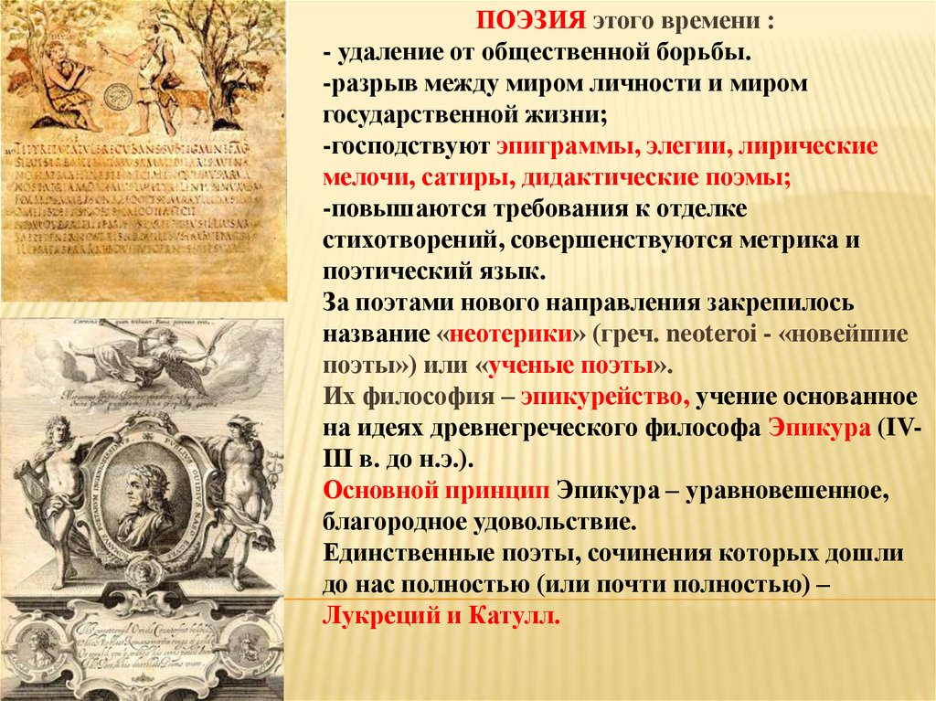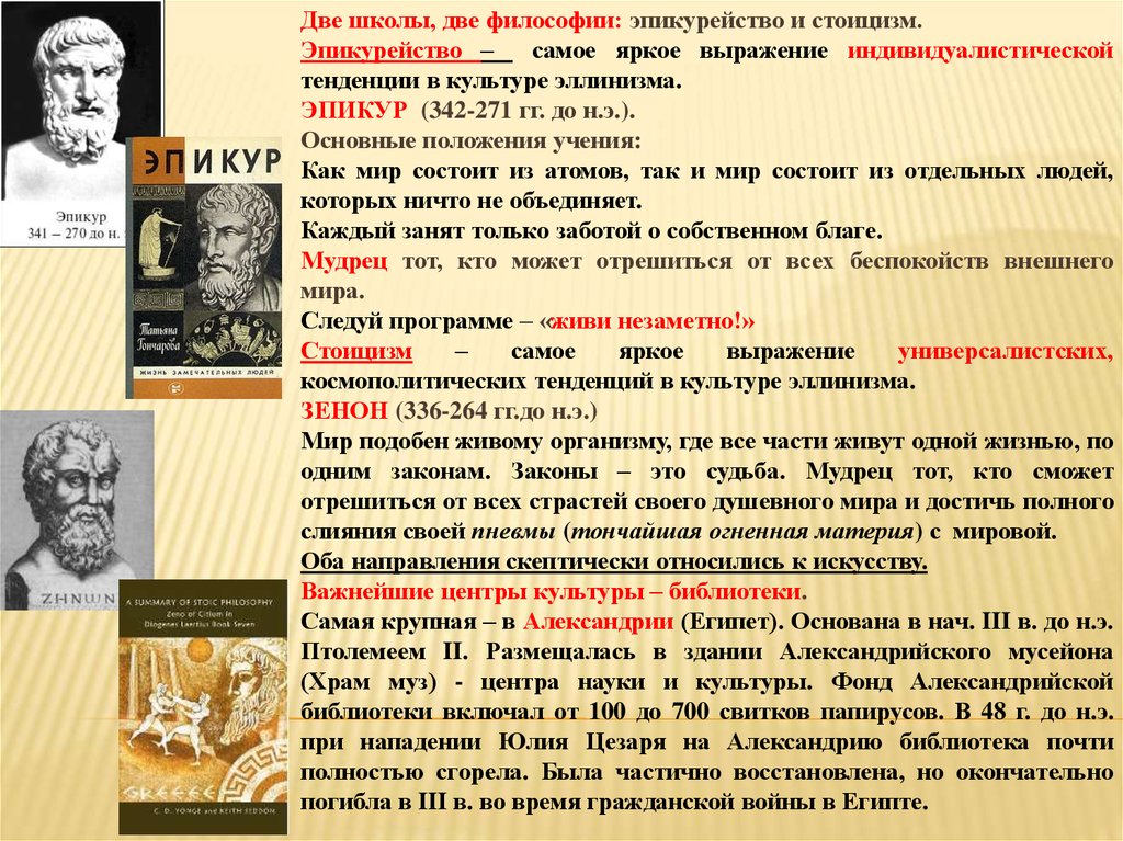 Две школы, две философии: эпикурейство и стоицизм.Эпикурейство –