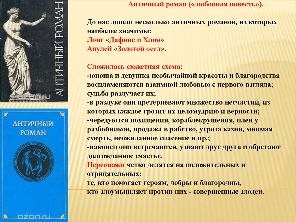 Античный роман («любовная повесть»).До нас дошли несколько античных романов, из которых