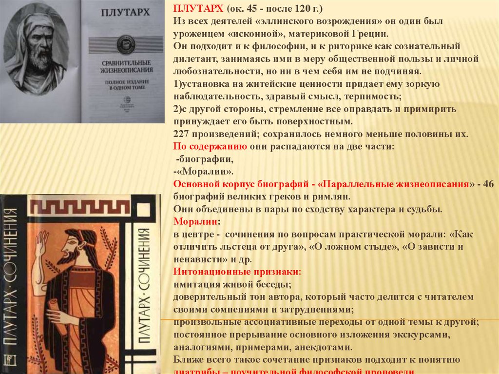 ПЛУТАРХ (ок. 45 - после 120 г.)Из всех деятелей «эллинского возрождения» он один был