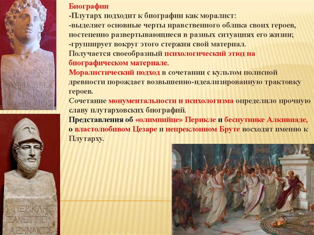 Биографии-Плутарх подходит к биографии как моралист: