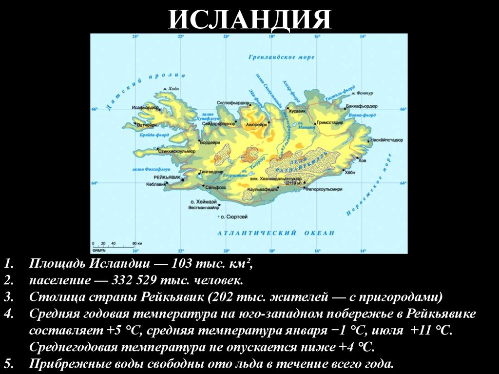 Столица страны Рейкьявик (202 тыс. жителей — с пригородами)