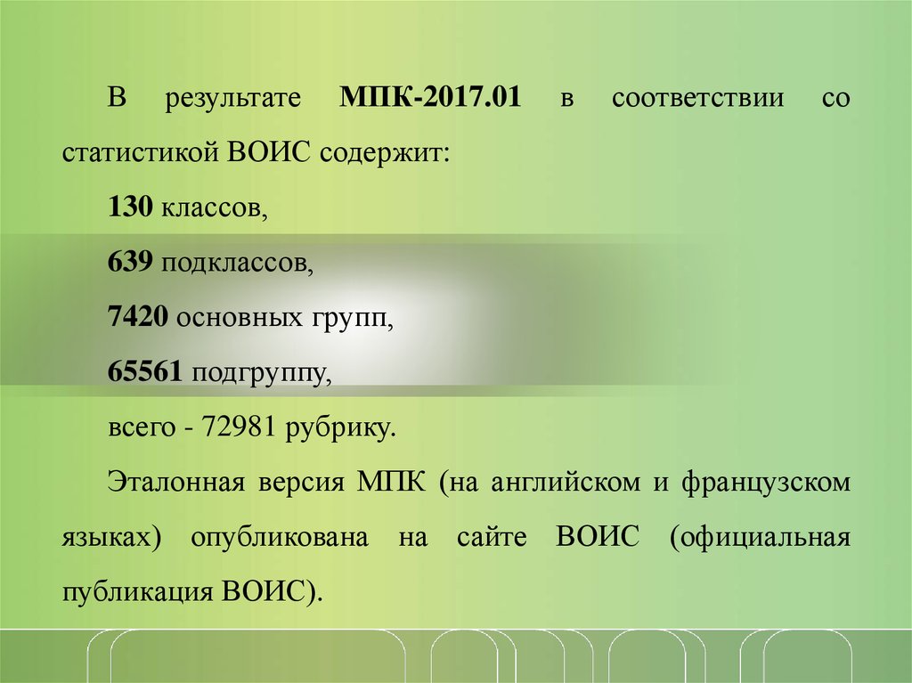 В результате МПК-2017.01 в соответствии со статистикой ВОИС
