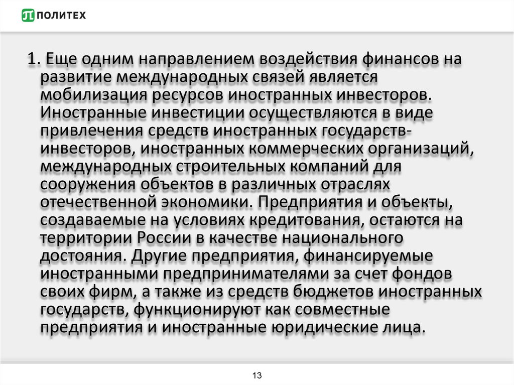 объём иностранного капитала и развить экспортный