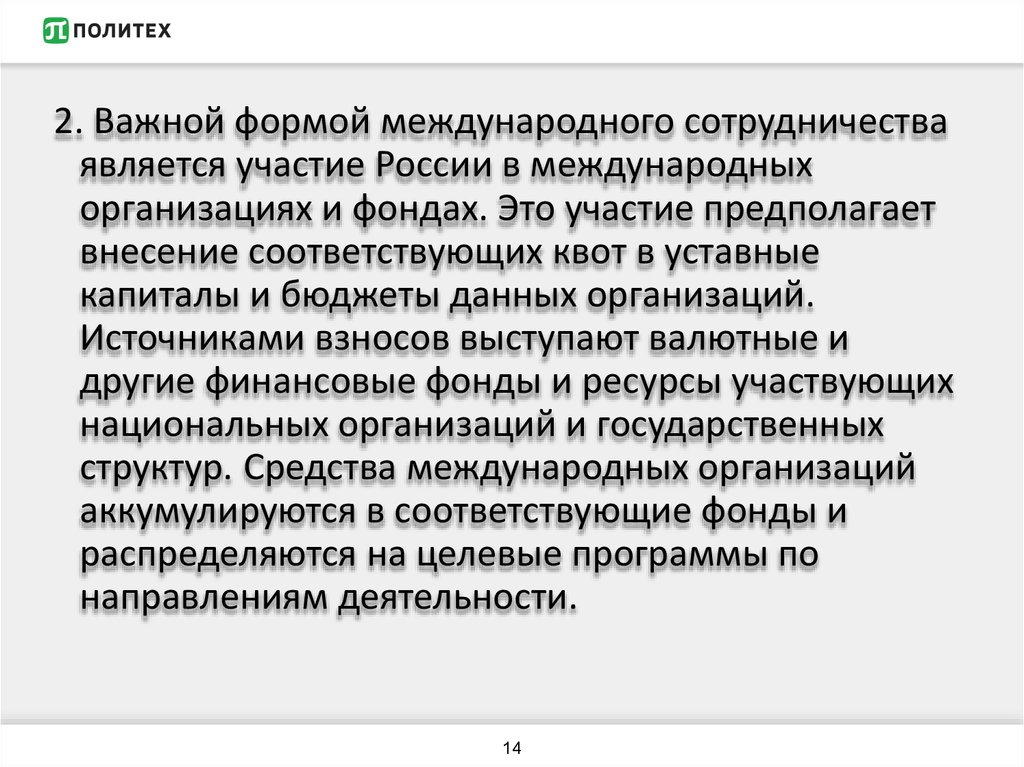 структур. Средства международных организаций