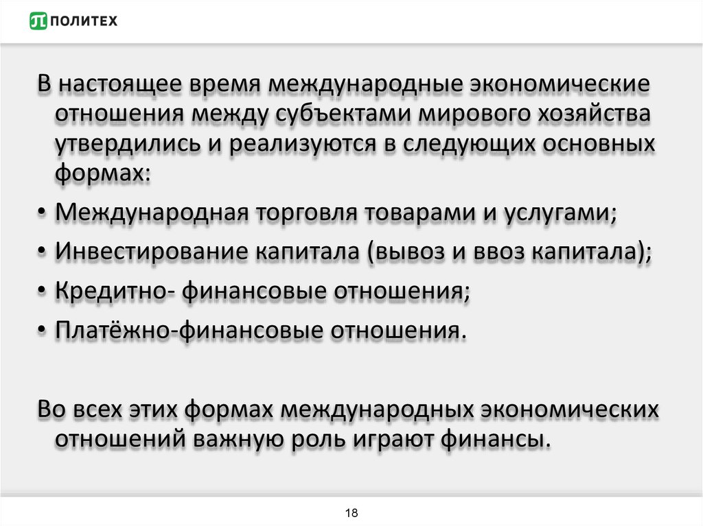 формах международных экономических отношений. РФ