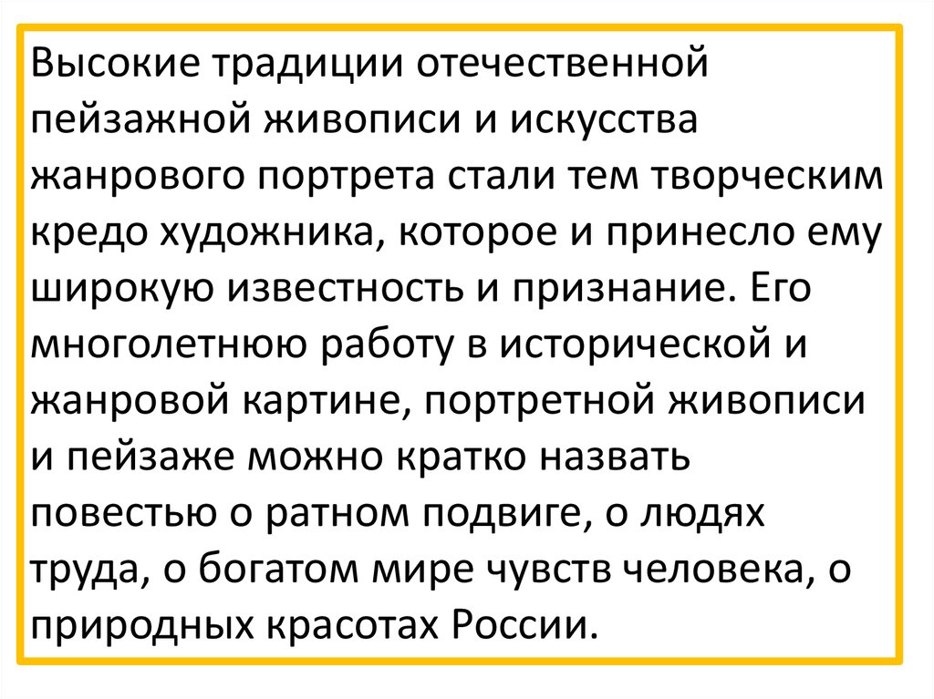 Высокие традиции отечественнойпейзажной живописи и искусства