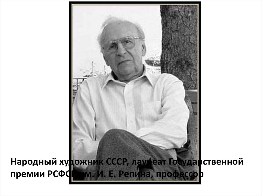 Народный художник СССР, лауреат Государственнойпремии РСФСР им. И. Е. Репина, профессор