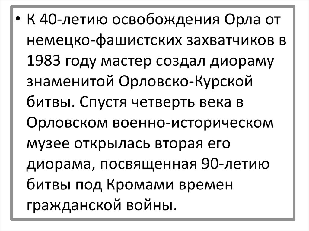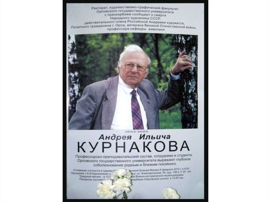 Военно-исторический музей40. Память народного художника СССР, лауреата Государственной премии РСФСР имени Репина, Почетного гражданина Орла Андрея Курнакова