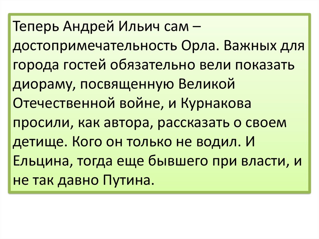 Теперь Андрей Ильич сам –достопримечательность Орла. Важных для