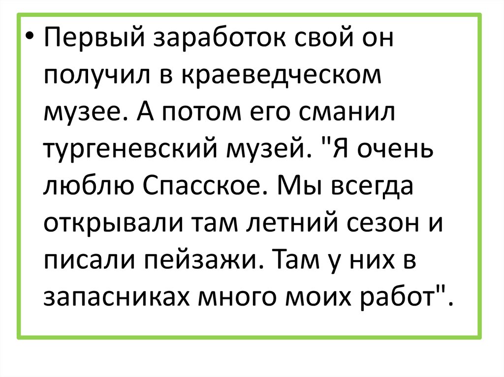 • Первый заработок свой онполучил в краеведческом