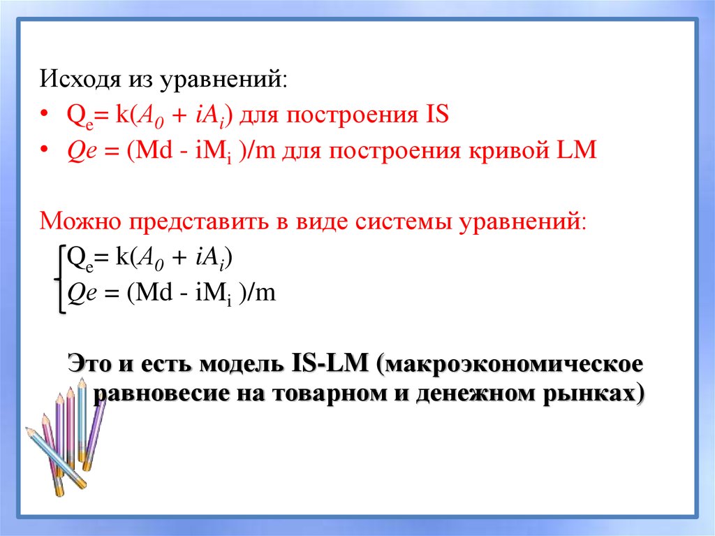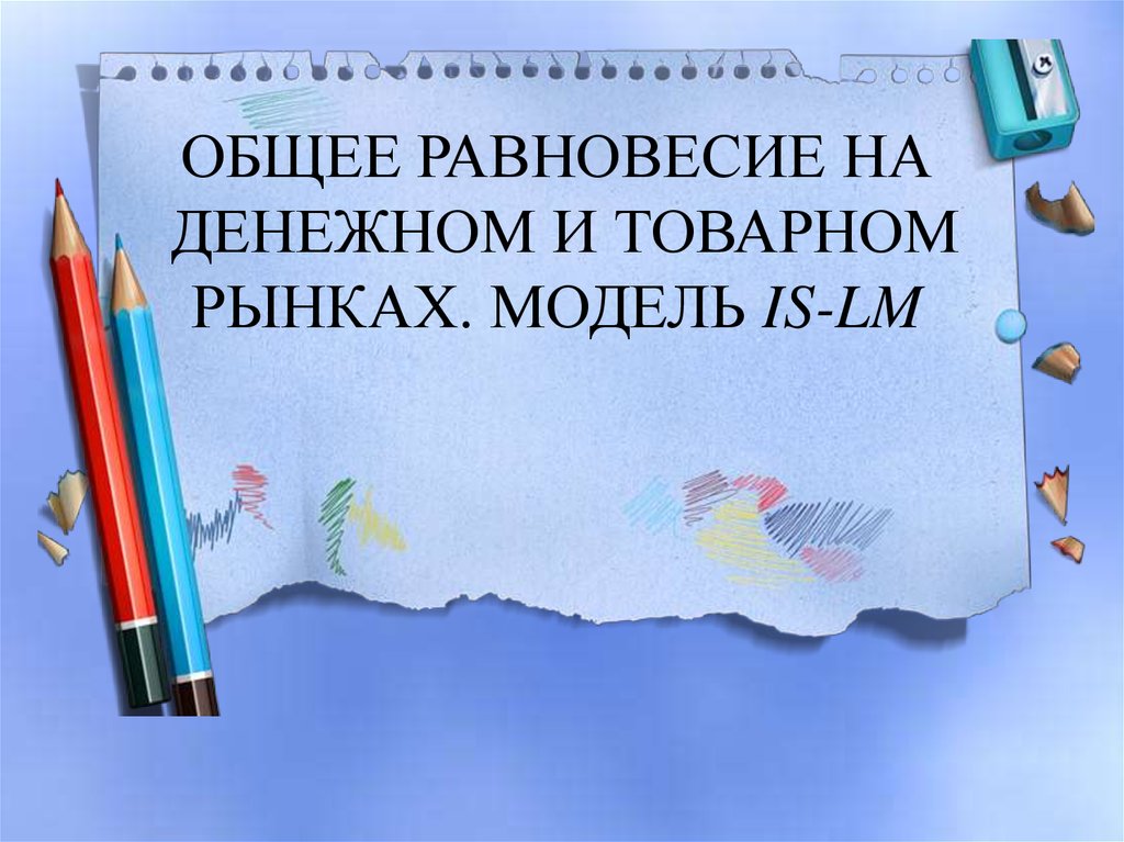 1. ОБЩЕЕ РАВНОВЕСИЕ НА ДЕНЕЖНОМ И ТОВАРНОМ РЫНКАХ. МОДЕЛЬ IS-LM