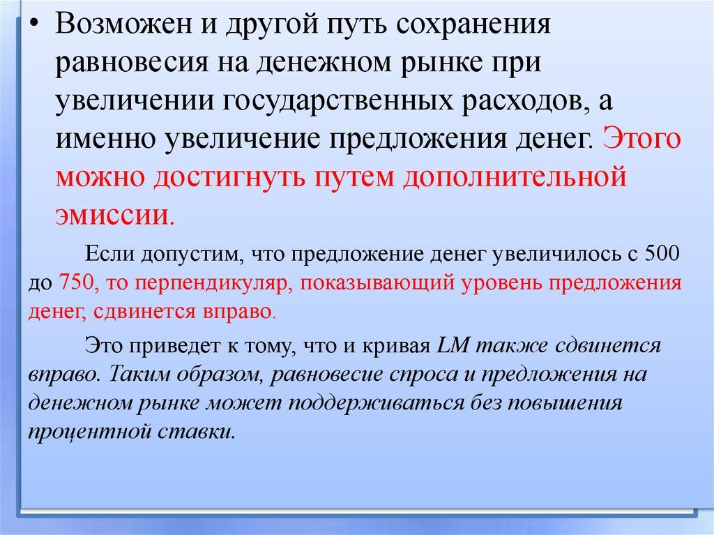 • Возможен и другой путь сохраненияравновесия на денежном рынке при