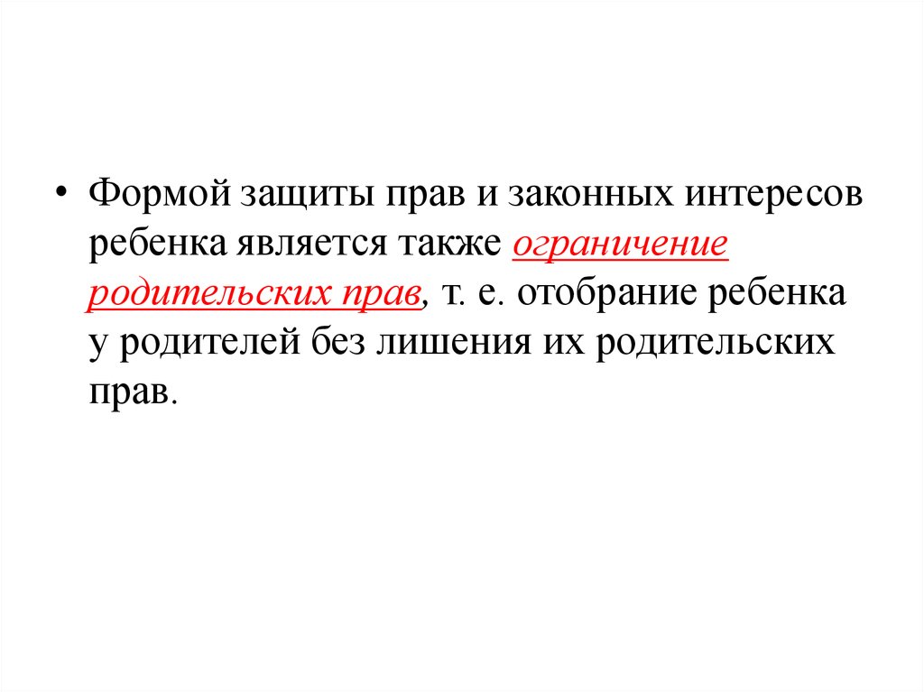 • Формой защиты прав и законных интересовребенка является также ограничение