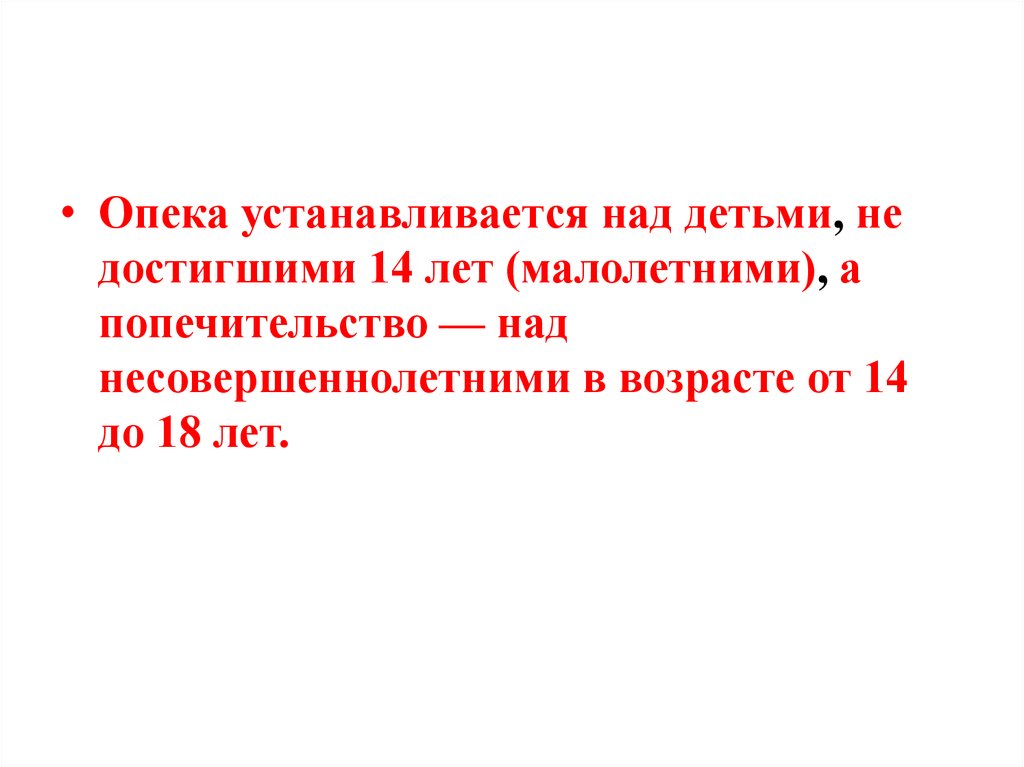 • Опека устанавливается над детьми, недостигшими 14 лет (малолетними), а