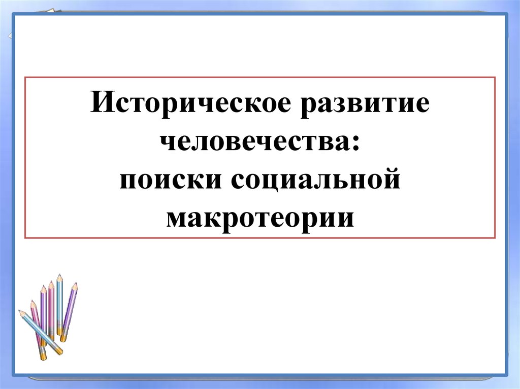1. Историческое развитие человечества: поиски социальной макротеории