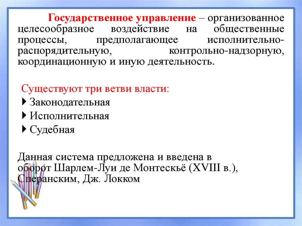 Государственное управление – организованноецелесообразное воздействие на общественные