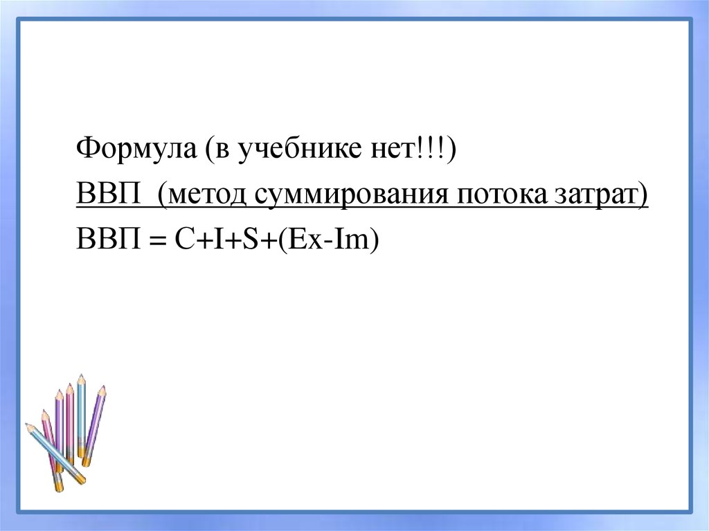 Формула (в учебнике нет!!!)ВВП (метод суммирования потока затрат)