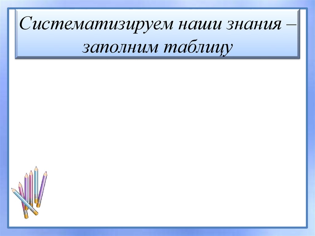 Систематизируем наши знания –заполним таблицу