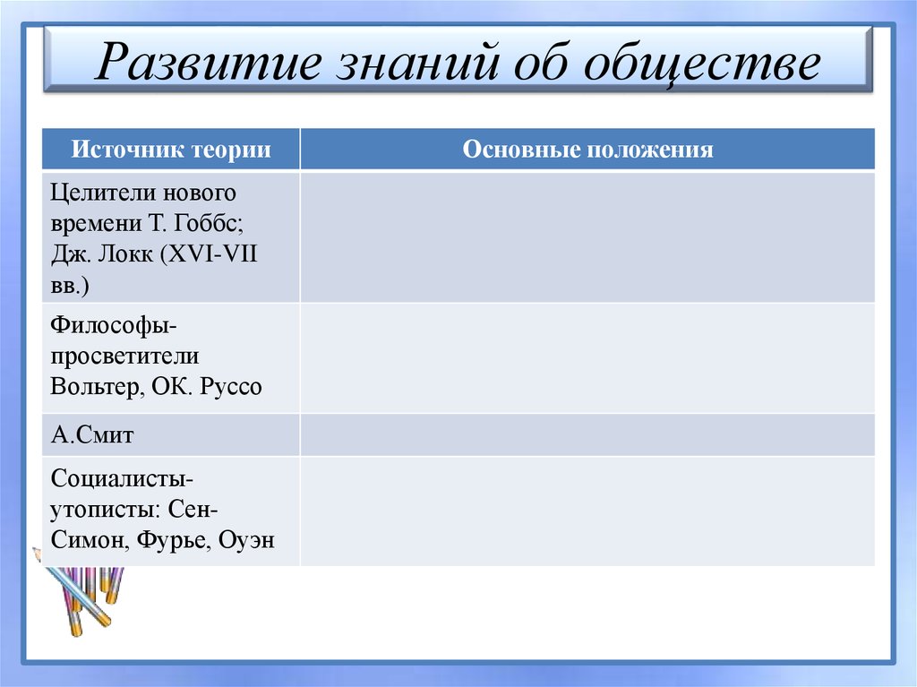 Развитие знаний об обществеИсточник теории