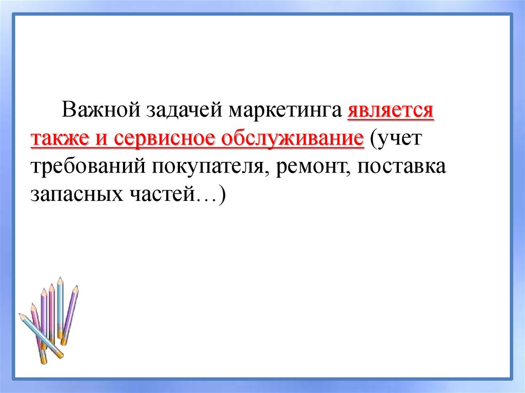 Важной задачей маркетинга являетсятакже и сервисное обслуживание (учет