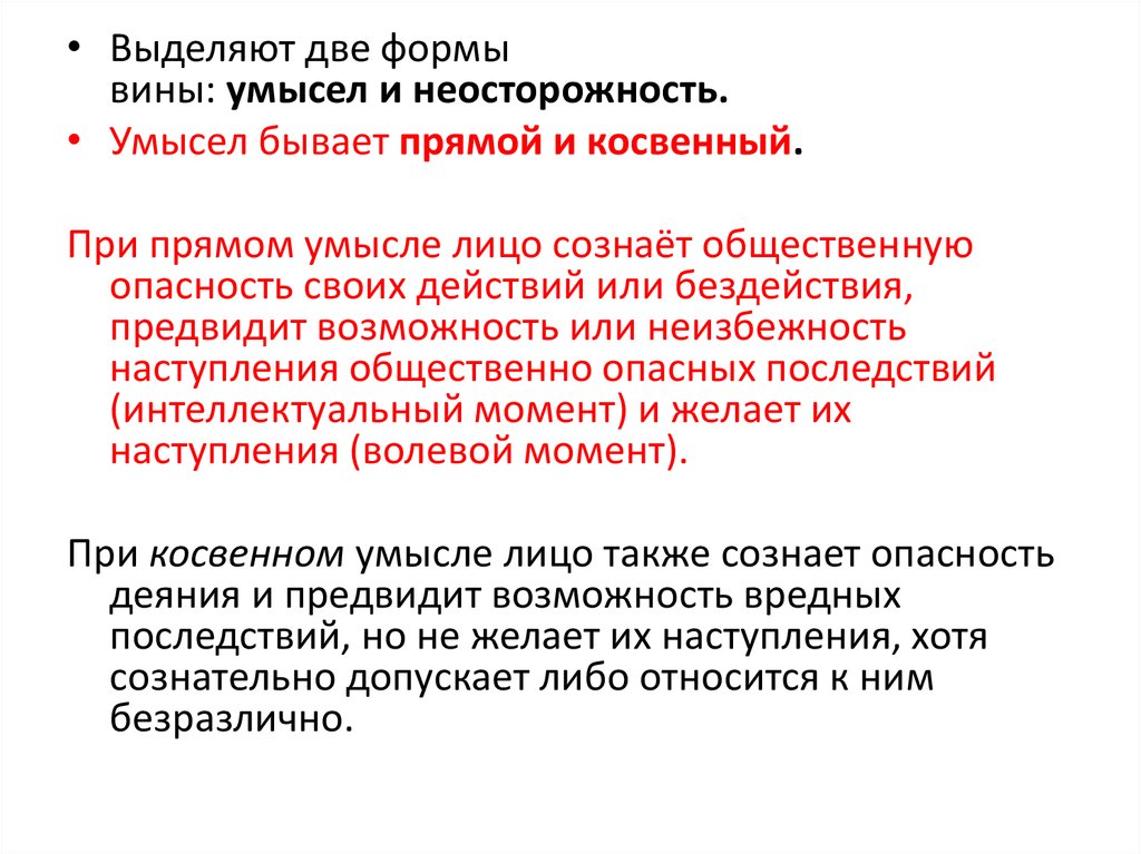 вины: умысел и неосторожность.