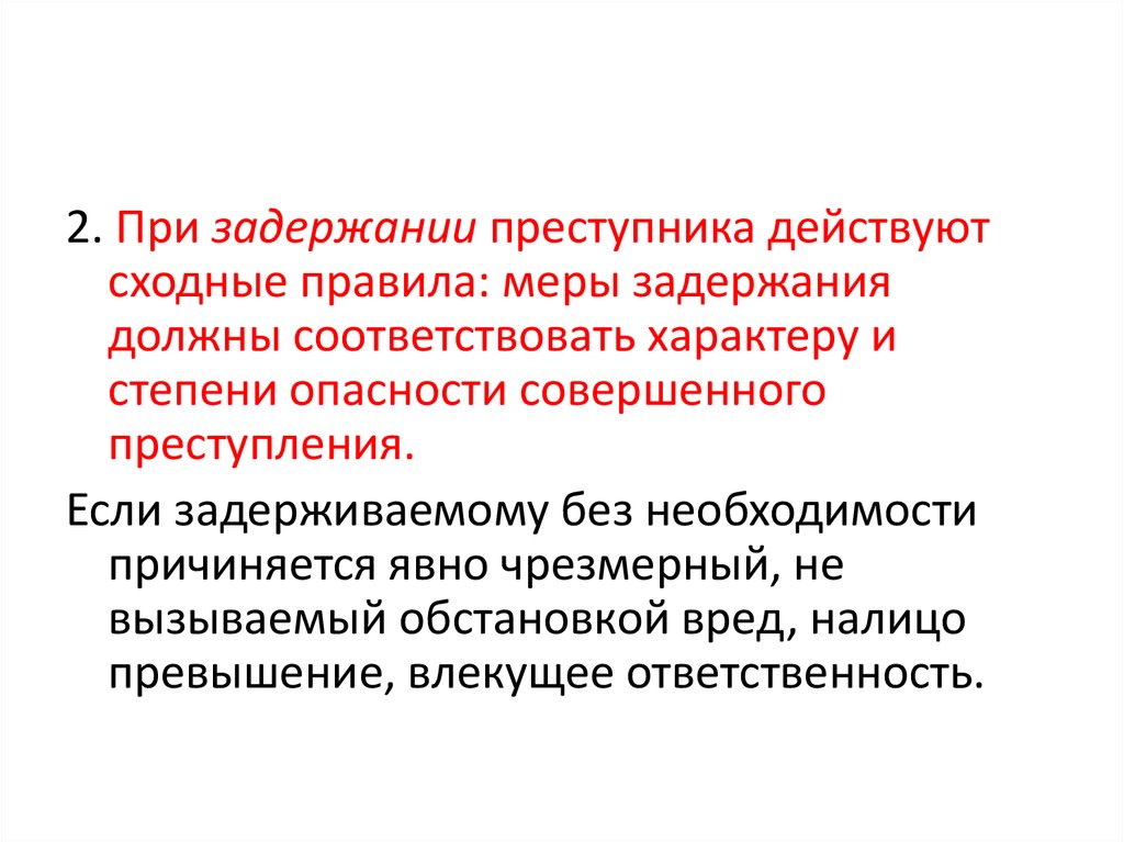2. При задержании преступника действуютсходные правила: меры задержания