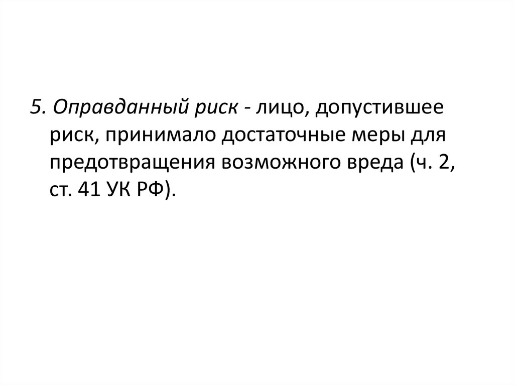5. Оправданный риск - лицо, допустившеериск, принимало достаточные меры для