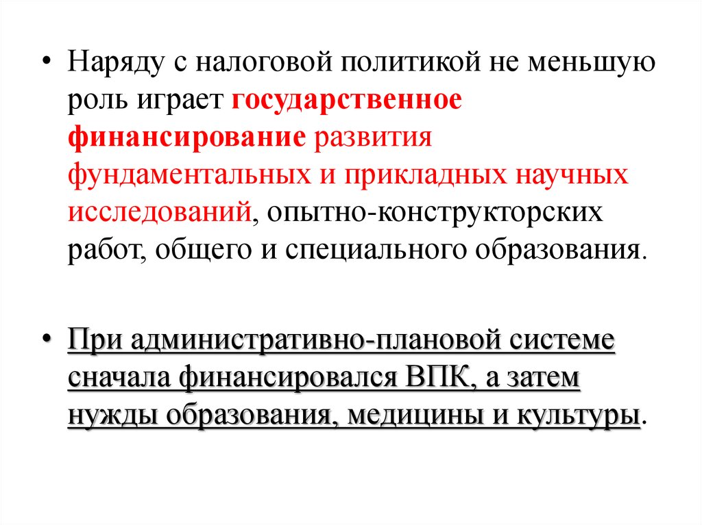 • Наряду с налоговой политикой не меньшуюроль играет государственное
