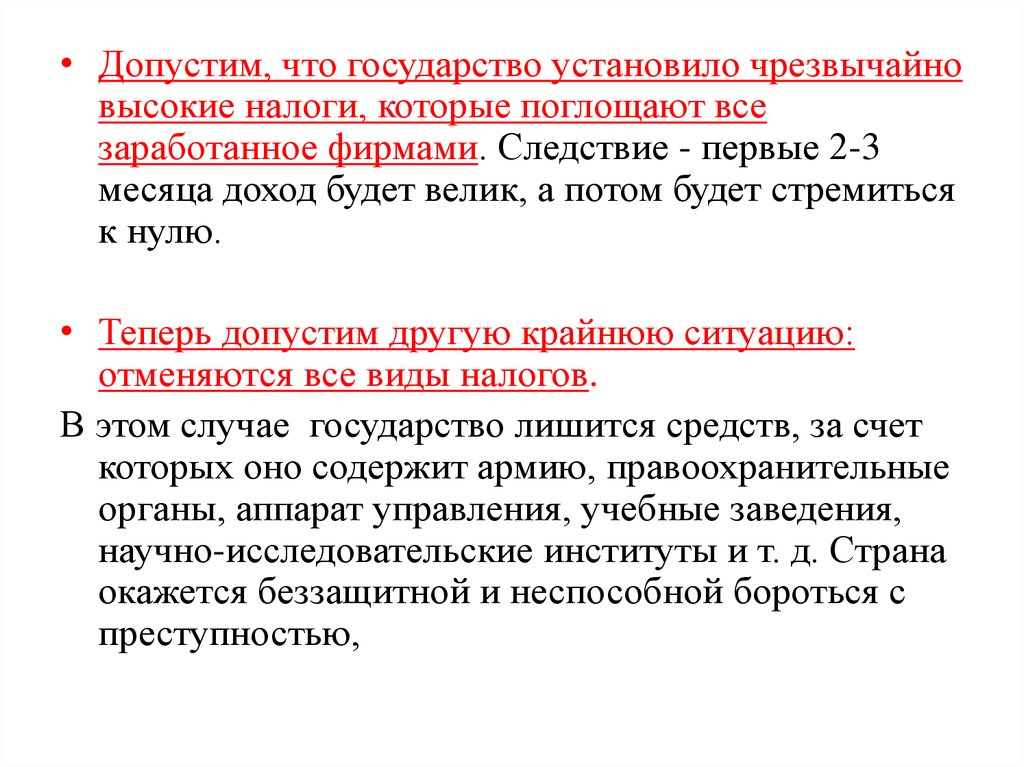• Допустим, что государство установило чрезвычайновысокие налоги, которые поглощают все