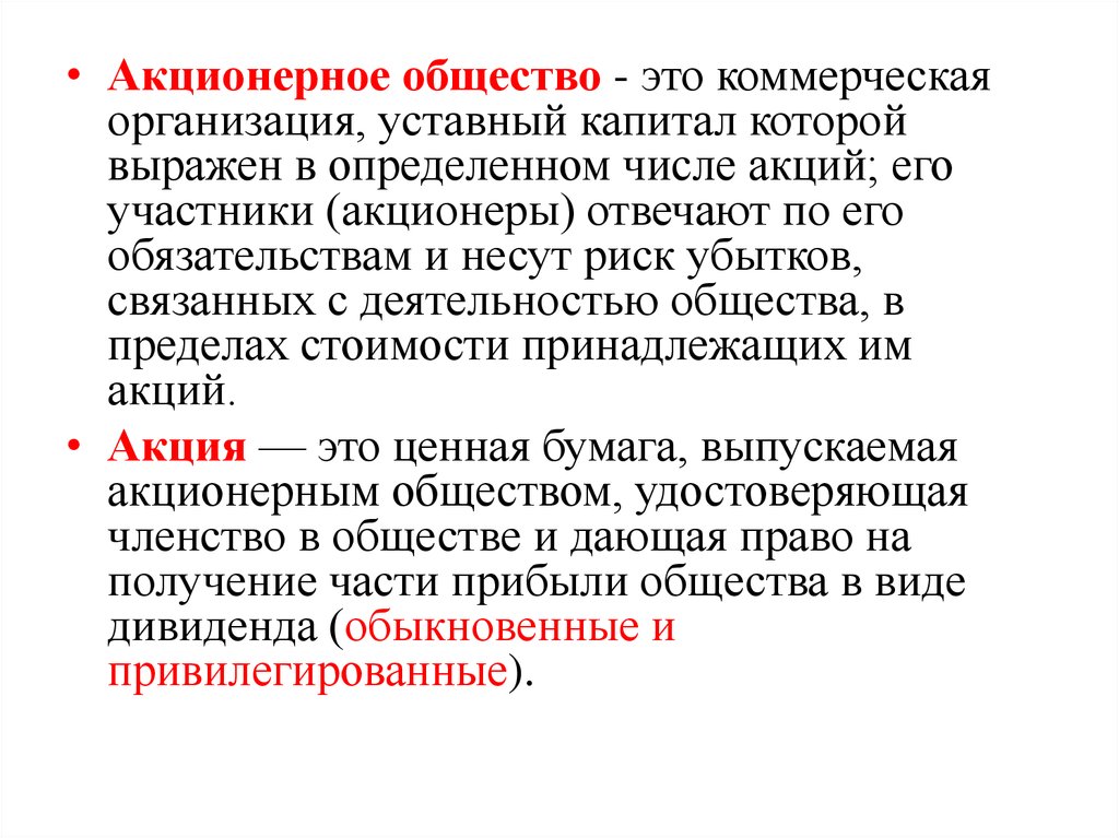 АО – на стоимость всего имуществавыпускаются акции, являющиеся ценными