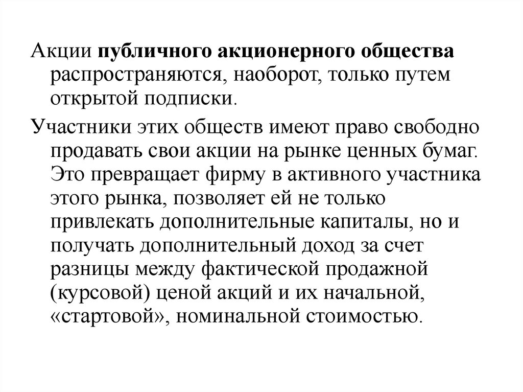 Акции публичного акционерного обществараспространяются, наоборот, только путем