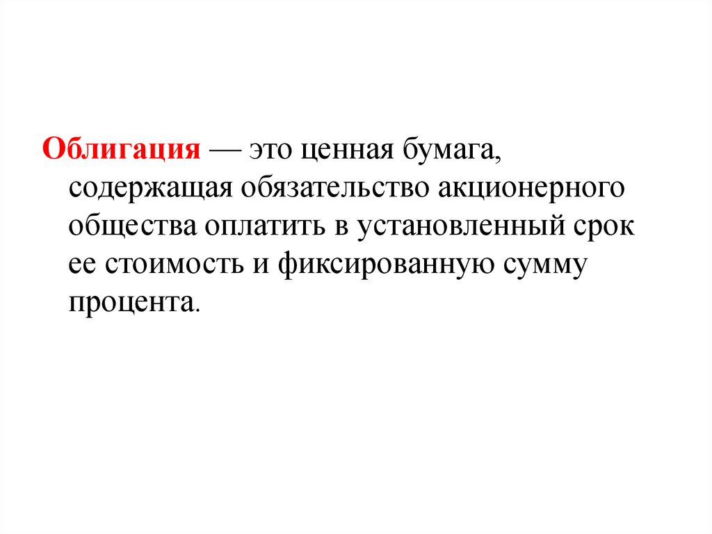 Облигация — это ценная бумага,содержащая обязательство акционерного