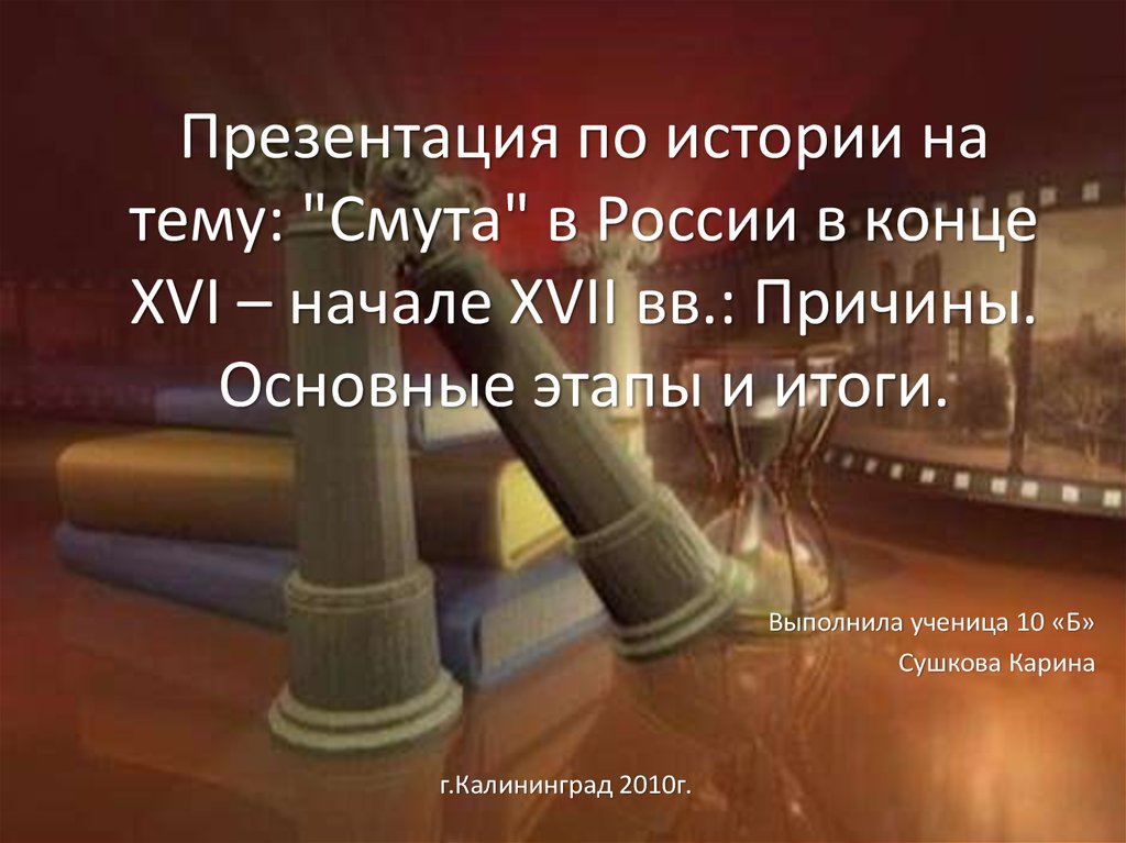 1. Презентация по истории на тему: "Смута" в России в конце XVI – начале XVII вв.: Причины. Основные этапы и итоги.