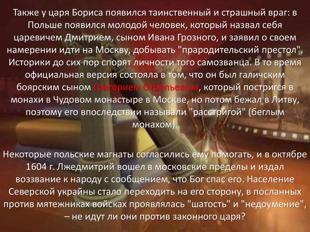 стремился поживиться в обстановке смуты. Лжедмитрий подступил