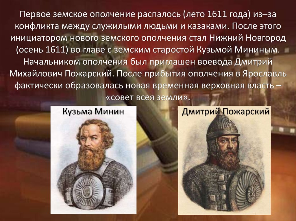 (осень 1611) во главе с земским старостой Кузьмой Мининым.