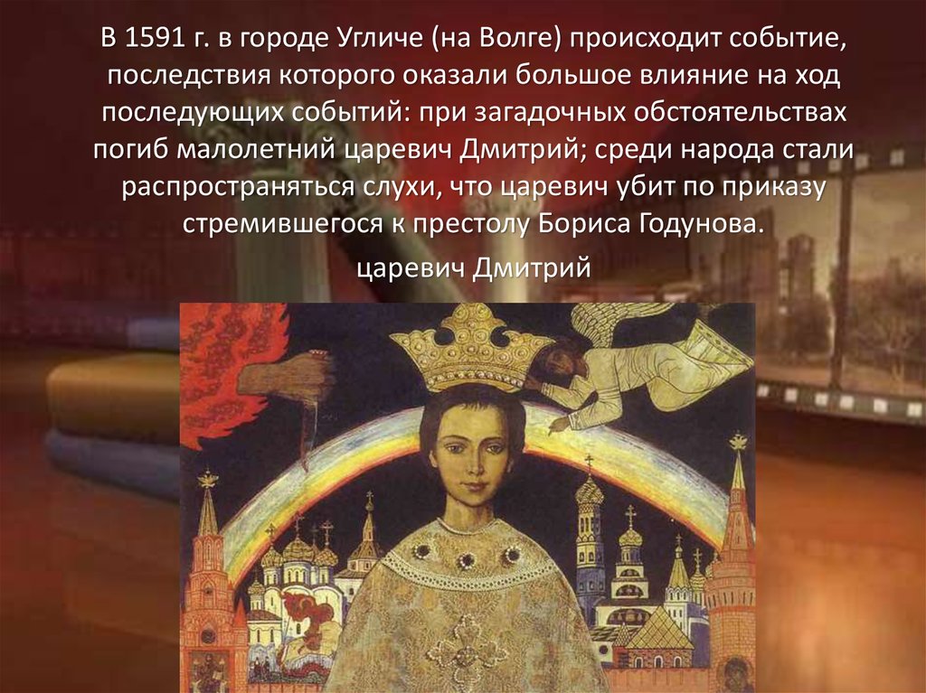 В 1591 г. в городе Угличе (на Волге) происходит событие,последствия которого оказали большое влияние на ход