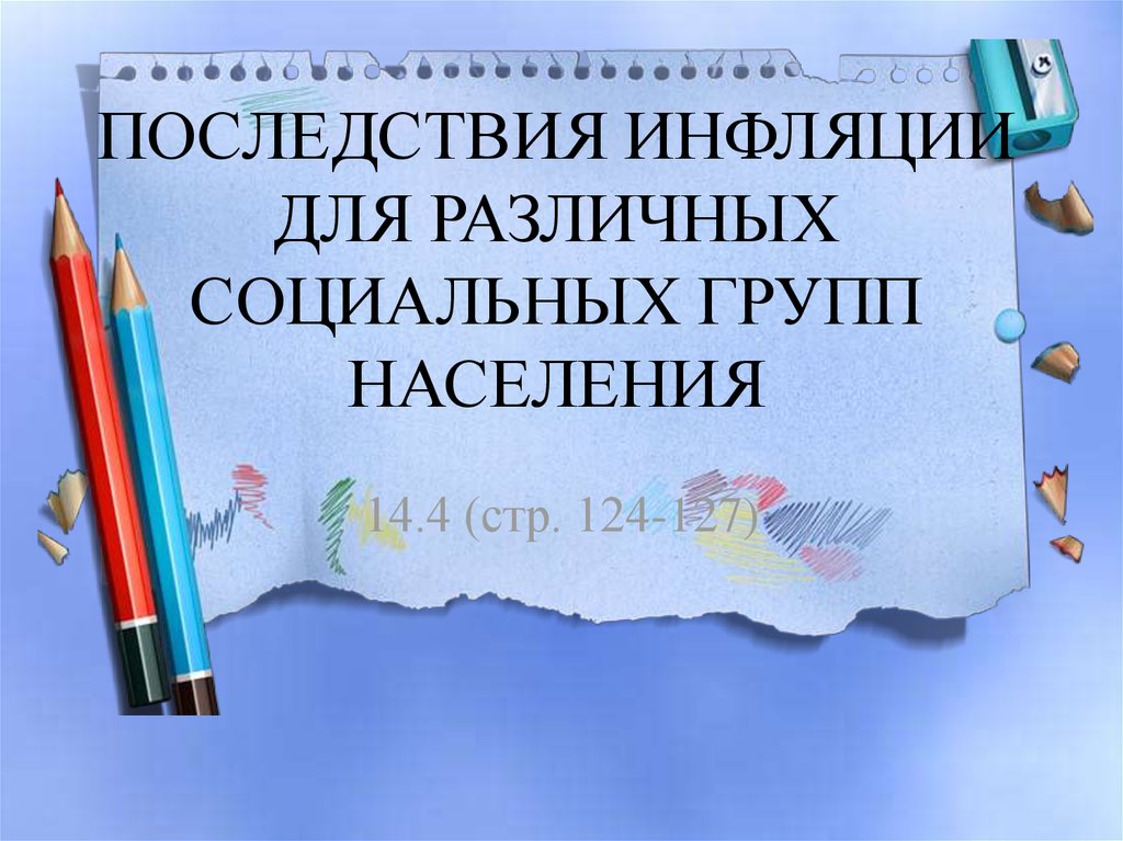 ПОСЛЕДСТВИЯ ИНФЛЯЦИИ ДЛЯ РАЗЛИЧНЫХ СОЦИАЛЬНЫХ ГРУПП НАСЕЛЕНИЯ