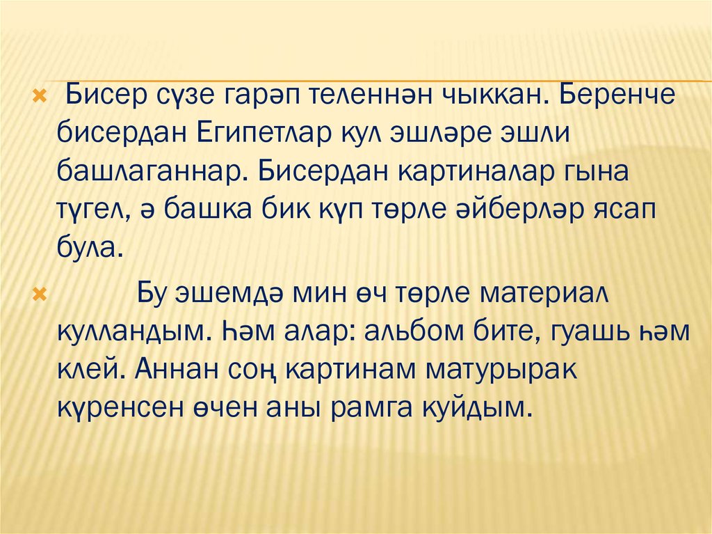 булмады. Миңа бисердан ясалган картиналар