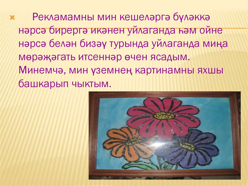Мин картинамны бисерлар сылап ясадым.Минемчә, картиналар дөньяда мөһим роль