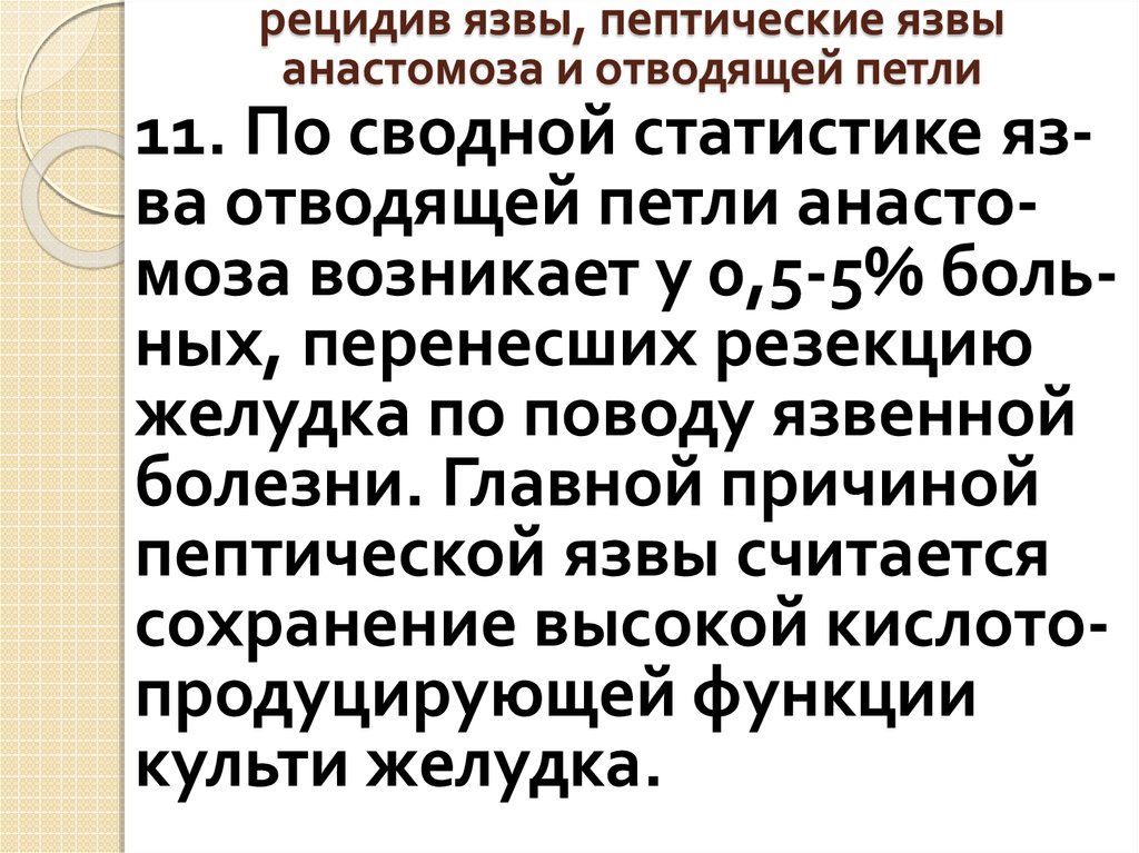 рецидив язвы, пептические язвыанастомоза и отводящей петли