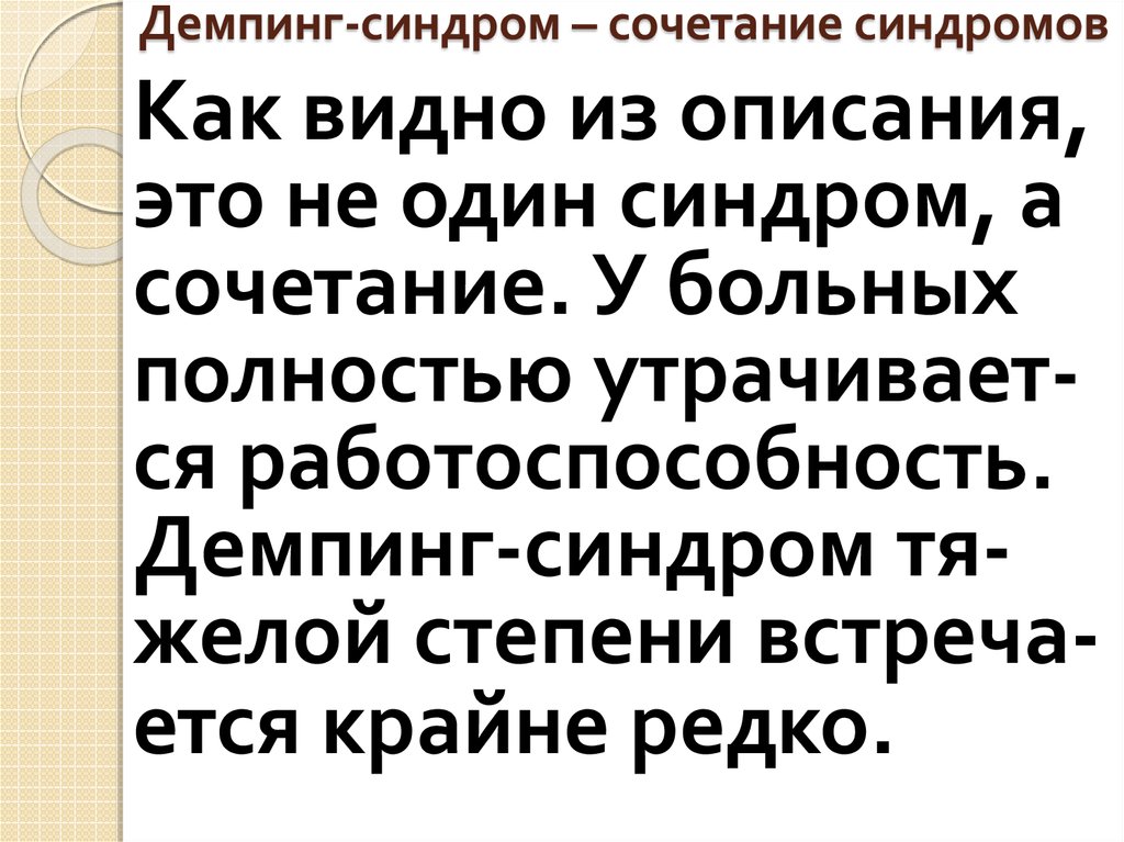 Демпинг-синдром тяжелой степени встречается крайне редко.